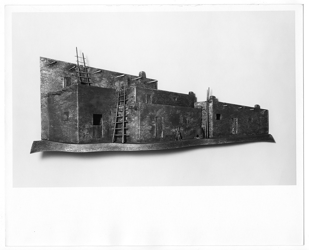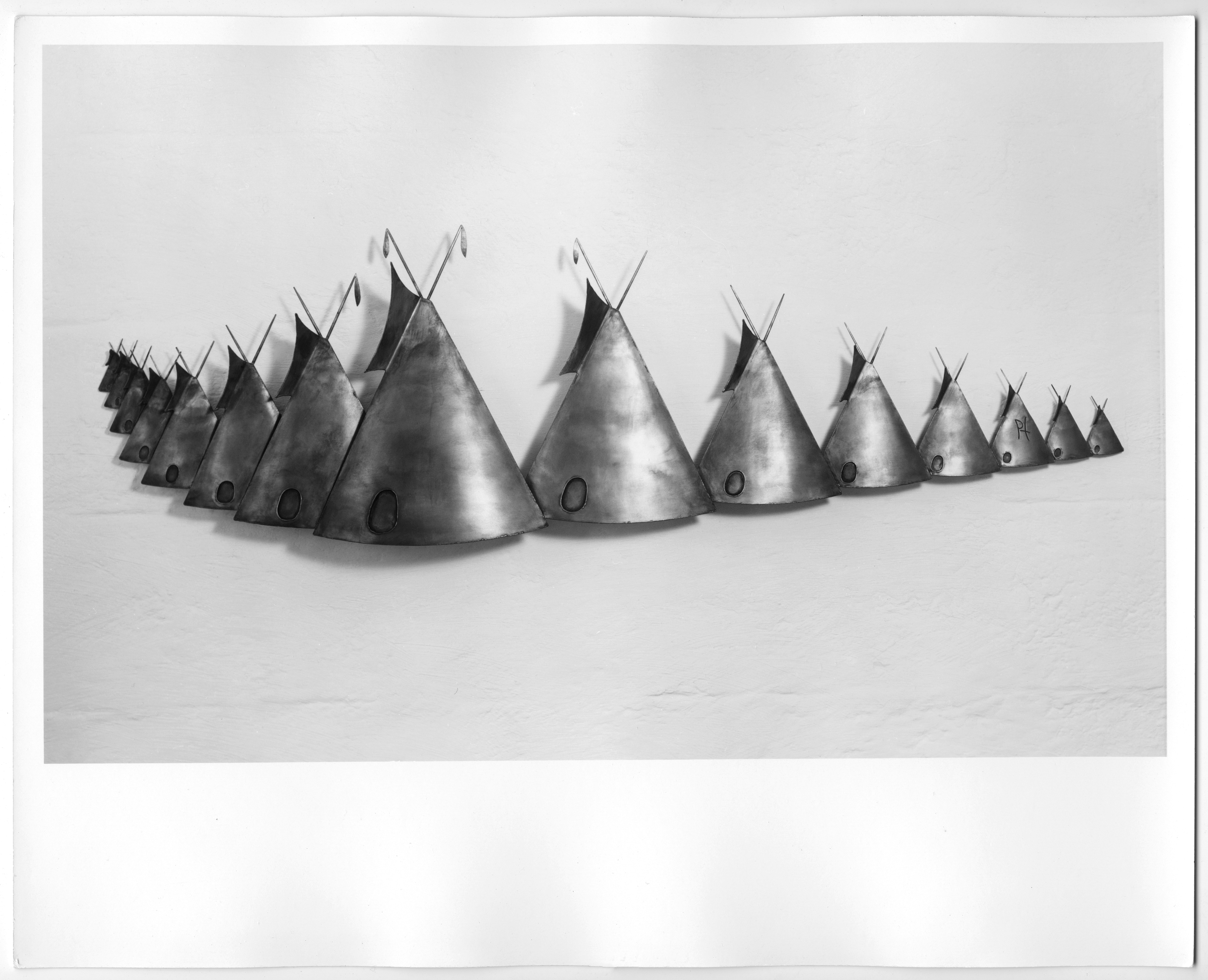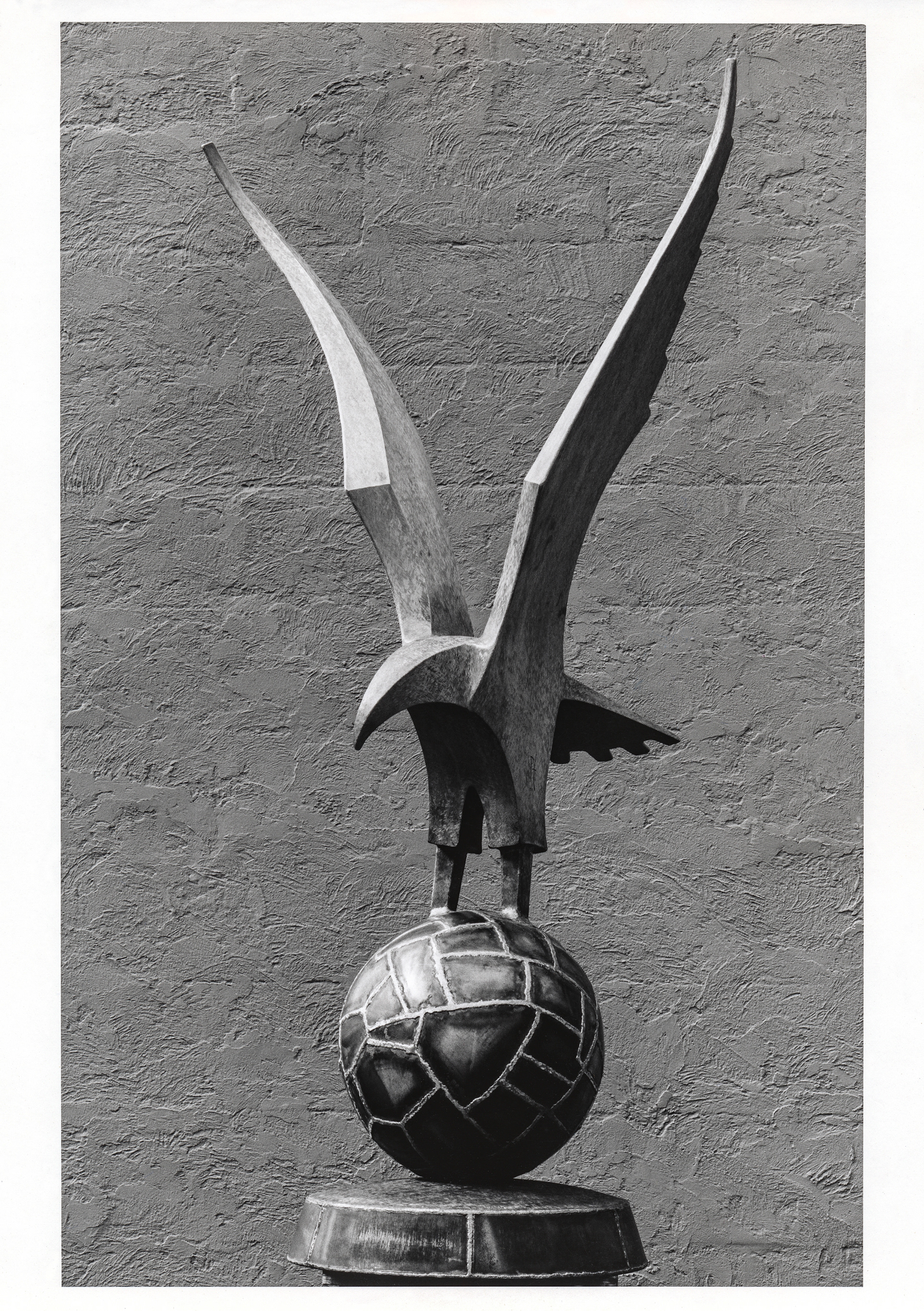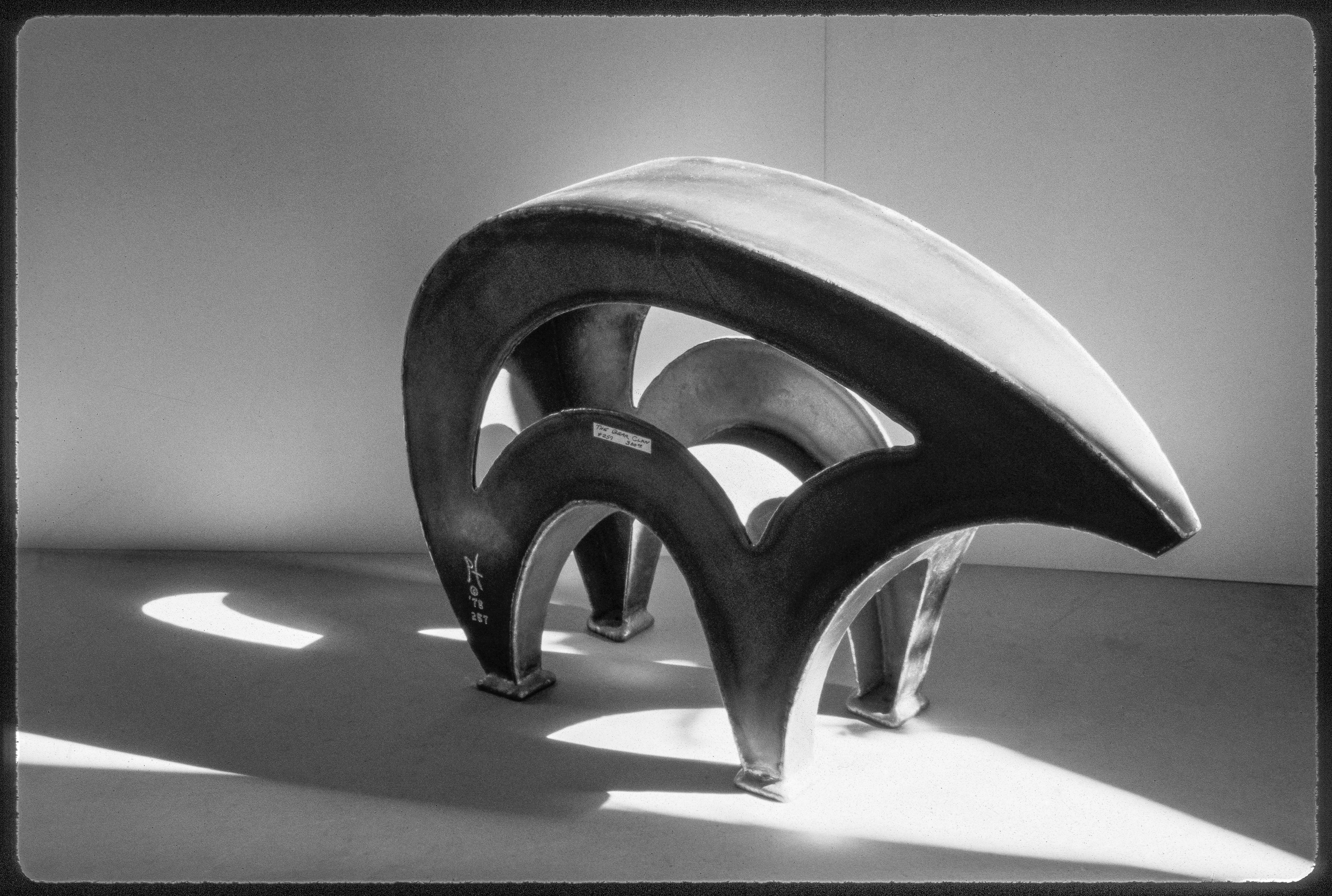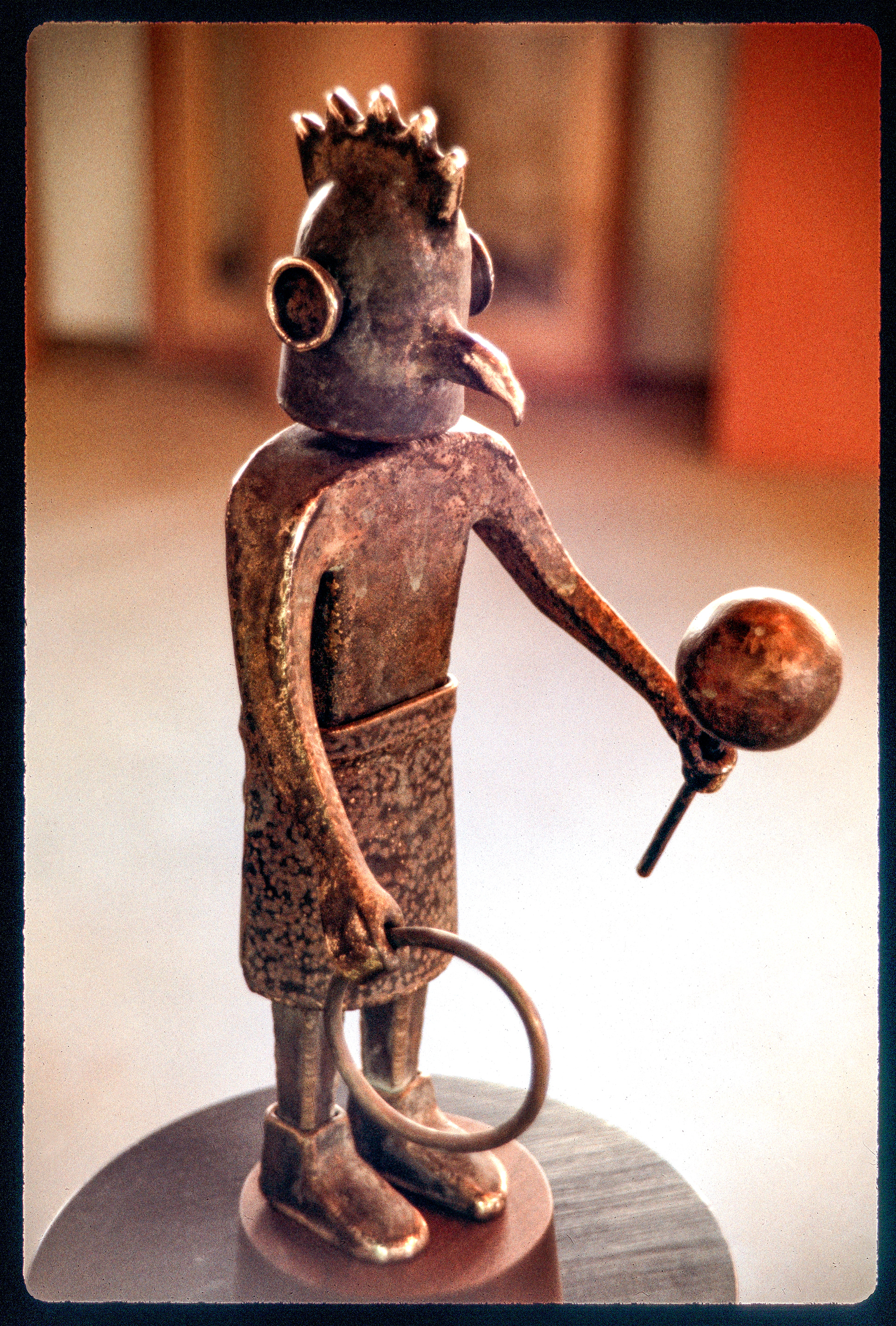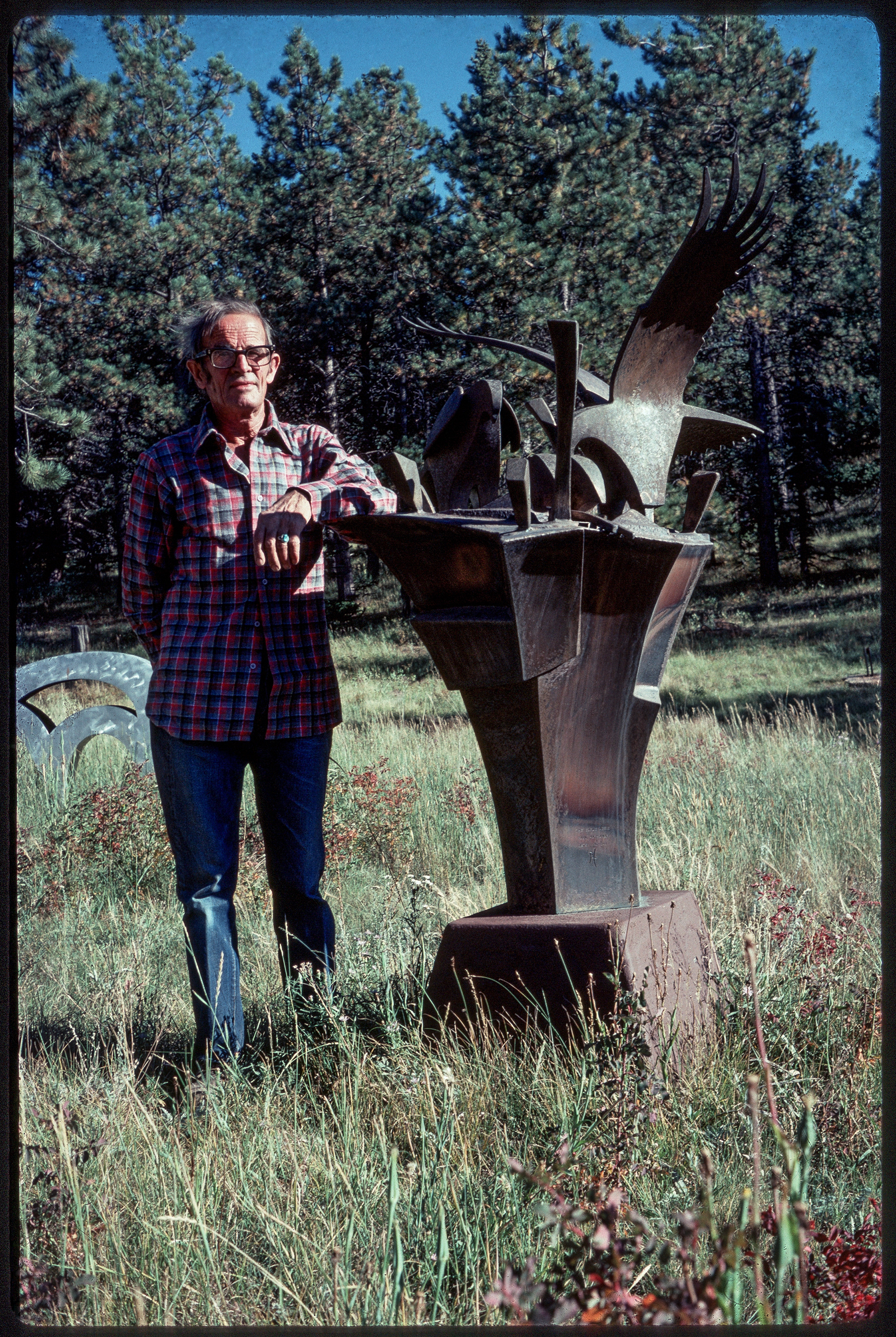 now band-saw this piece to shape. Repeat lay-out and sawing on an adjoining piece. now shape these pieces with hammer and anvil, or vise, or whatever is needed to obtain the required contours and fits. These two pieces might now be tacked together with the torch. The third piece, adjoining, now is cut out, shaped, and tacked in place on the first two pieces. This procedure continues until you have all the pieces in place. one sculpture may have an unlimited number of pieces.