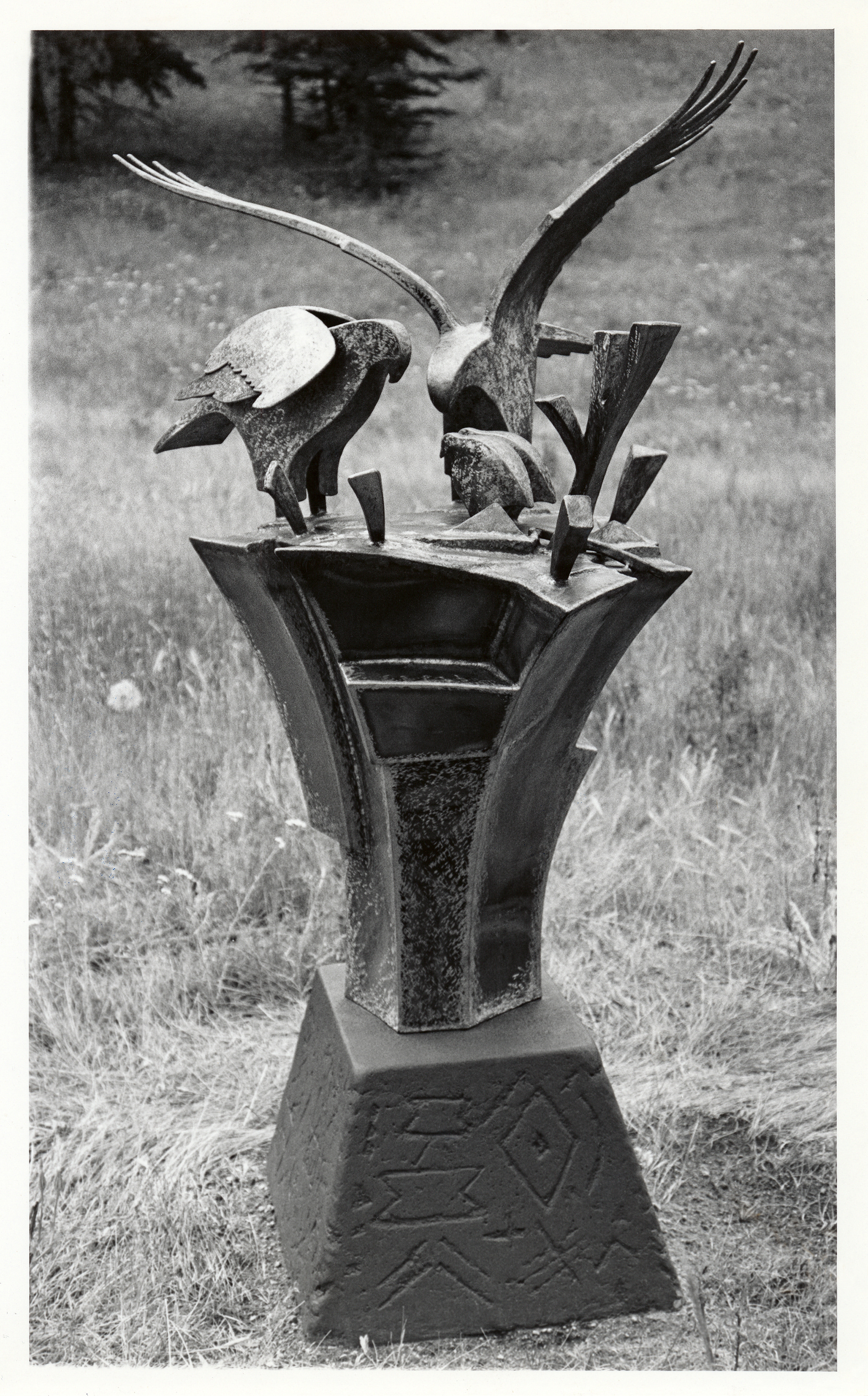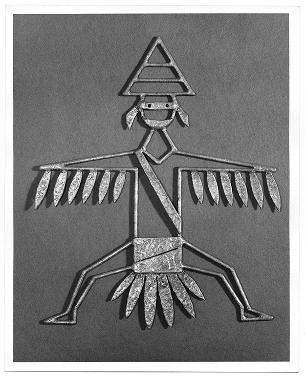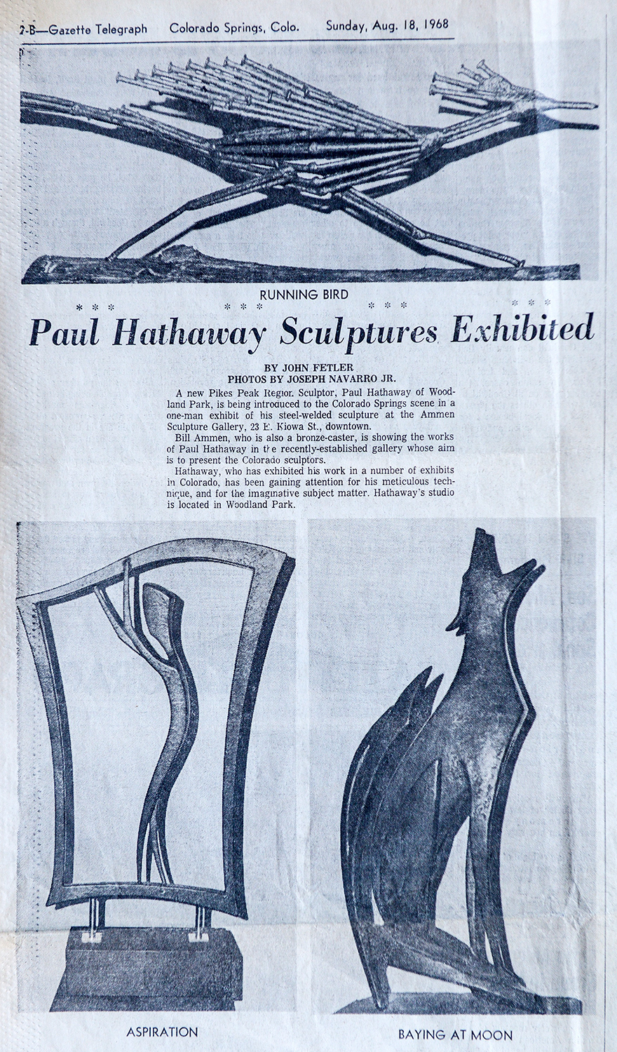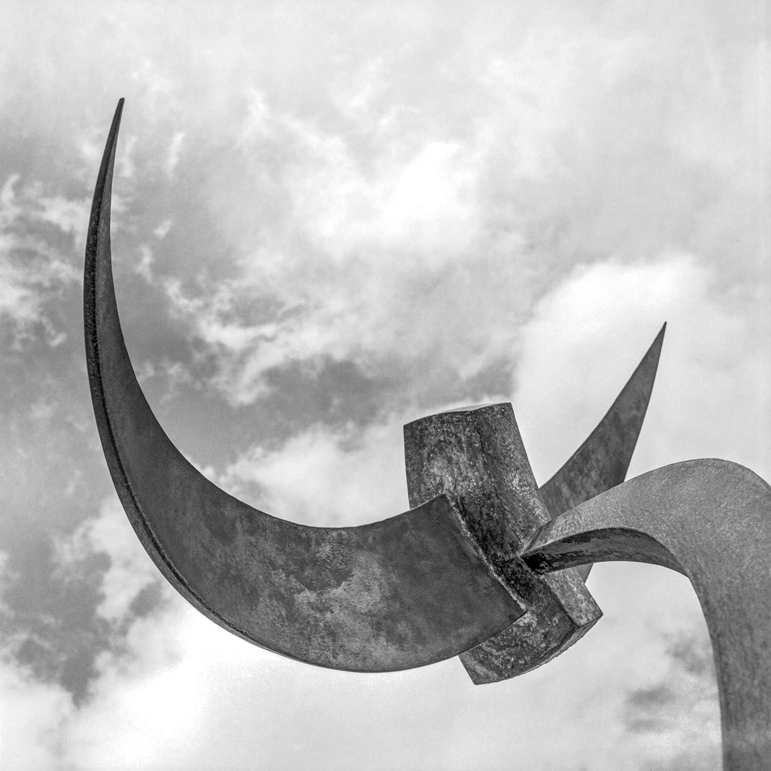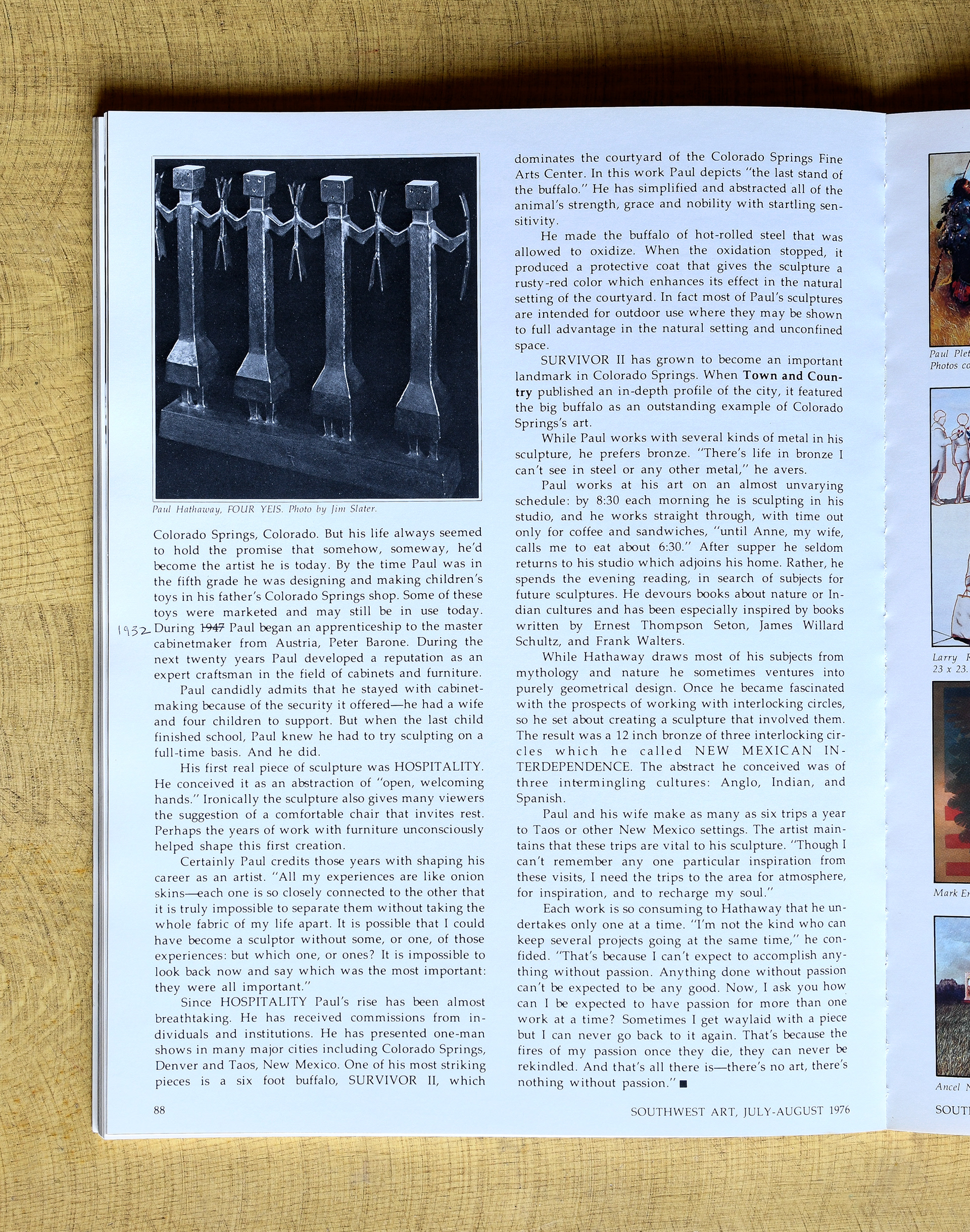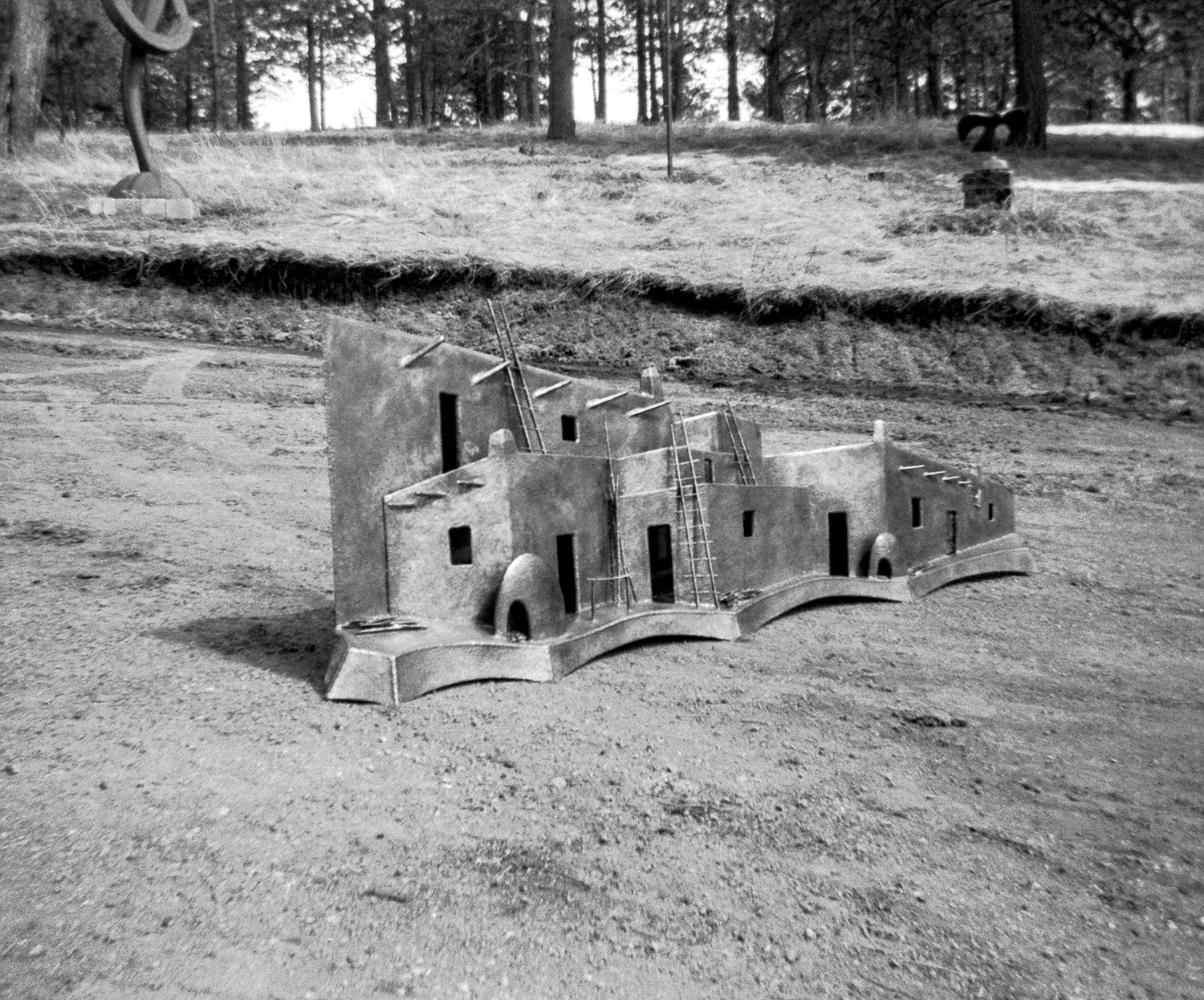 now band-saw this piece to shape. Repeat lay-out and sawing on an adjoining piece. now shape these pieces with hammer and anvil, or vise, or whatever is needed to obtain the required contours and fits. These two pieces might now be tacked together with the torch. The third piece, adjoining, now is cut out, shaped, and tacked in place on the first two pieces. This procedure continues until you have all the pieces in place. one sculpture may have an unlimited number of pieces.