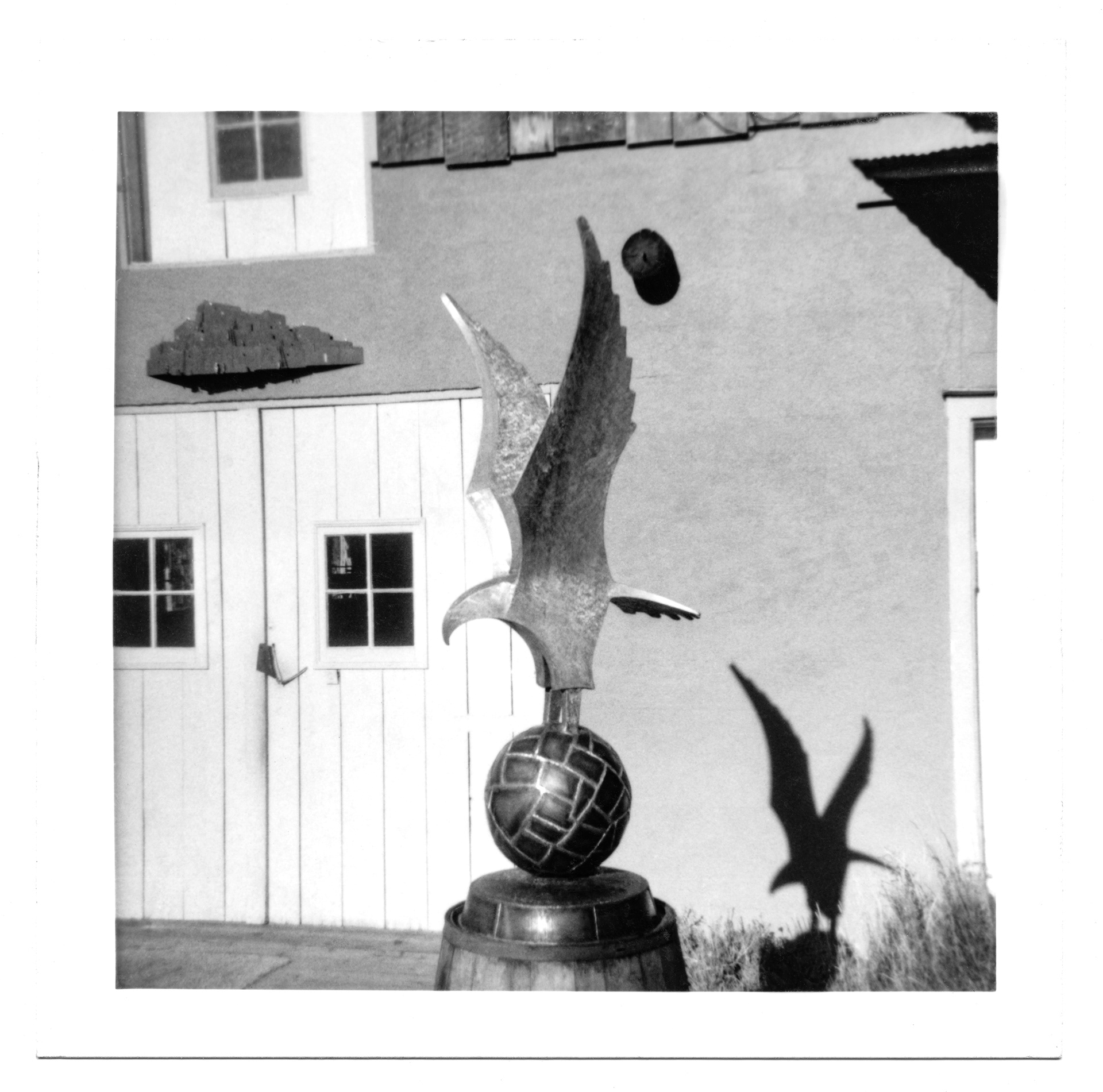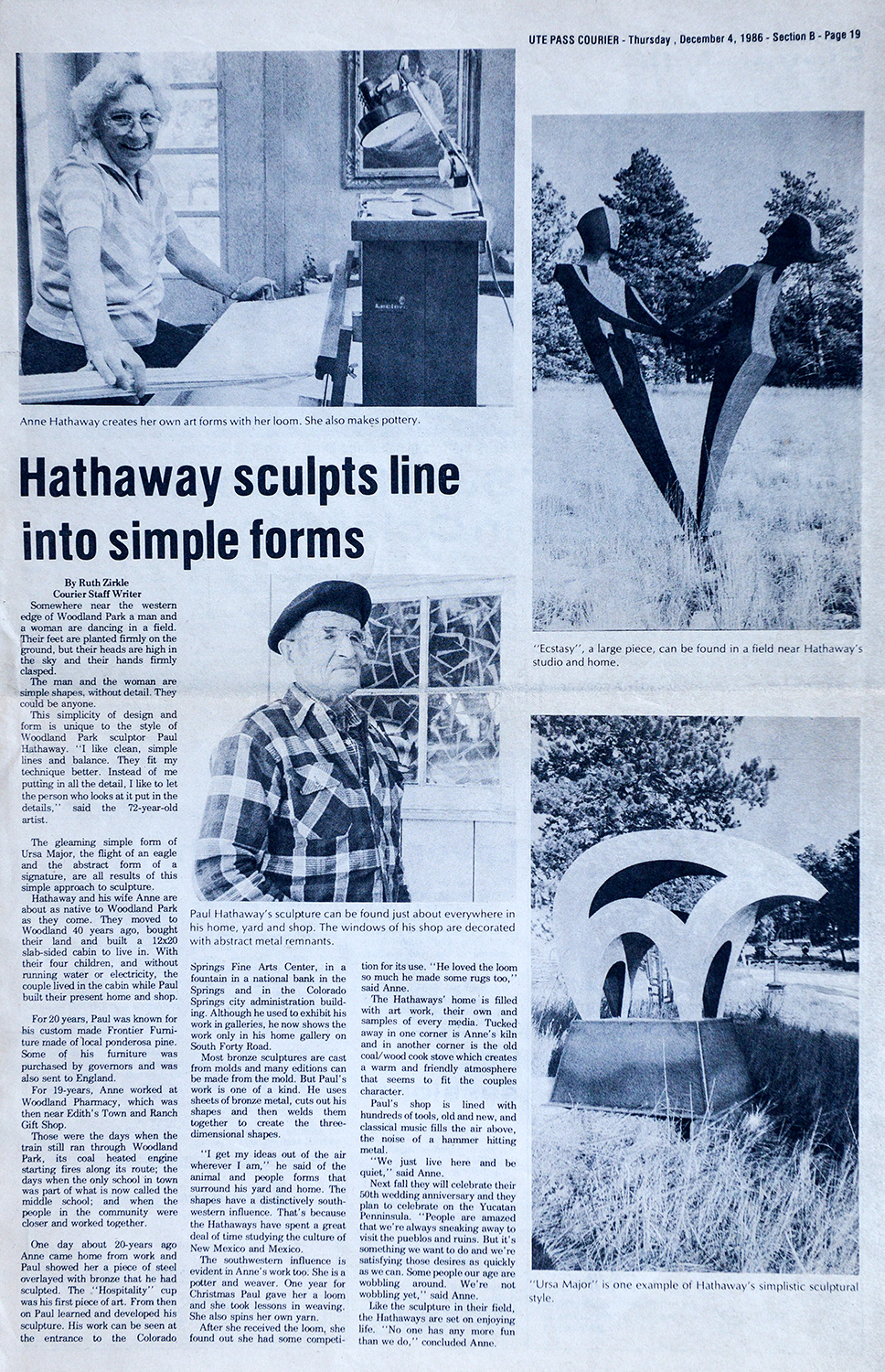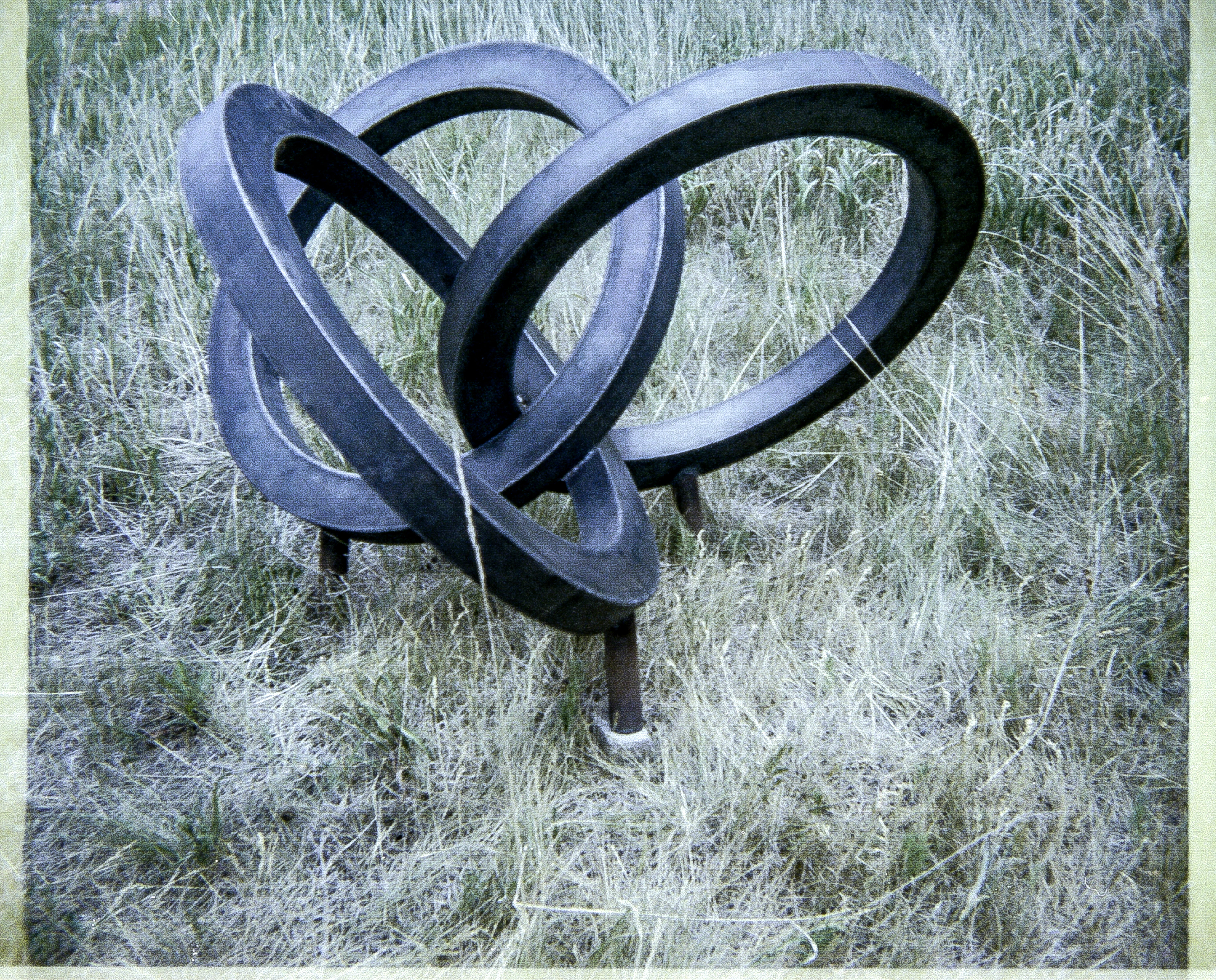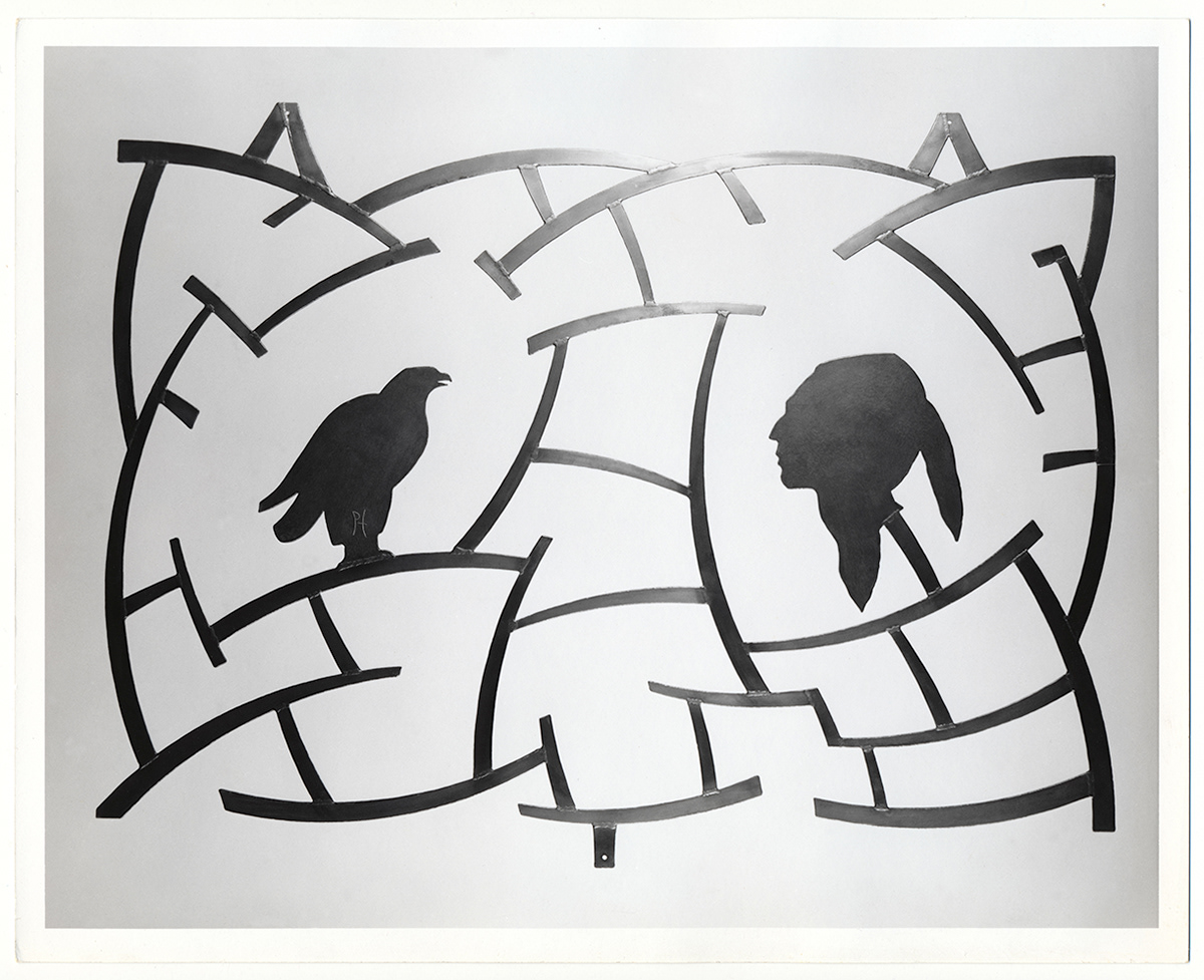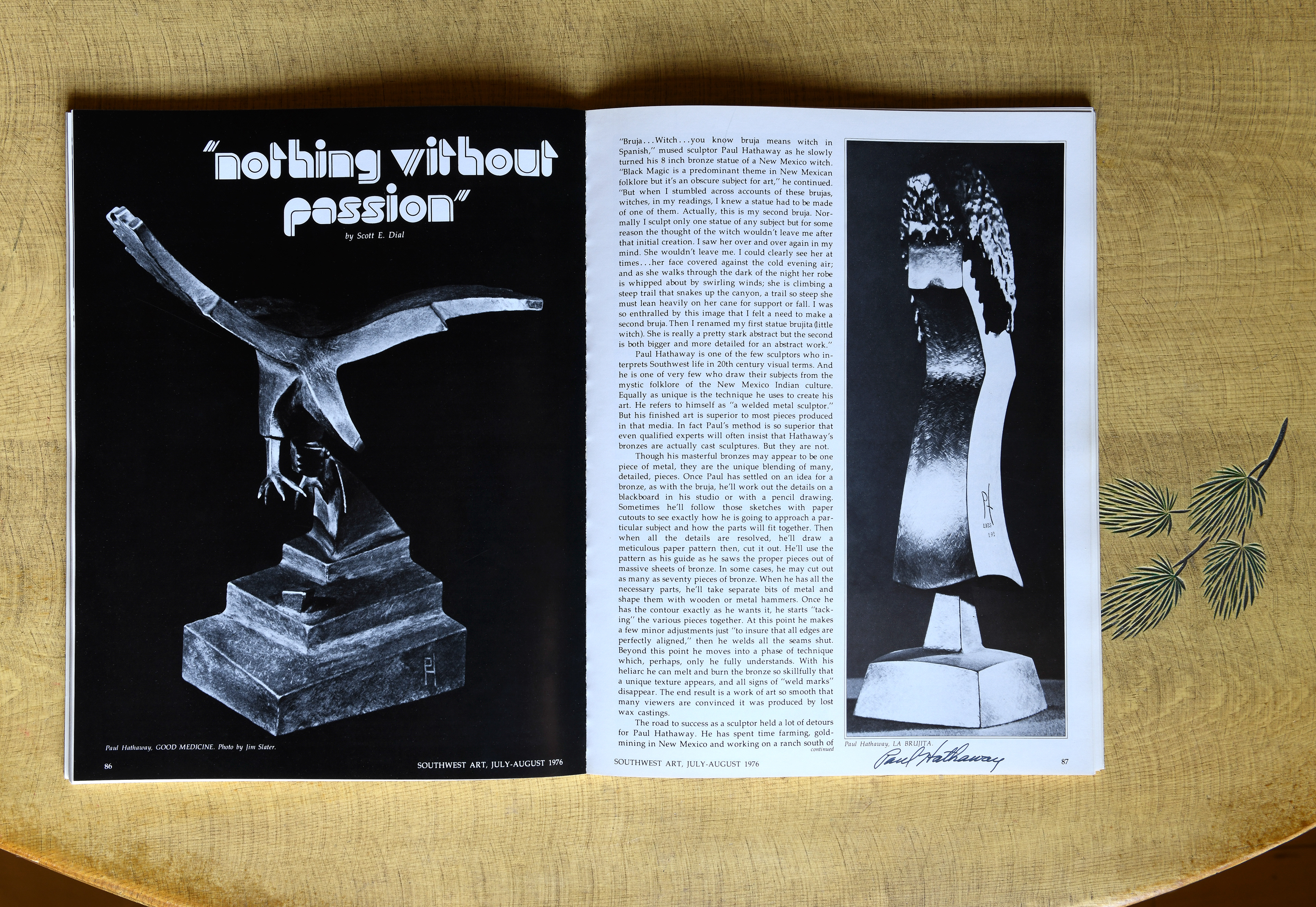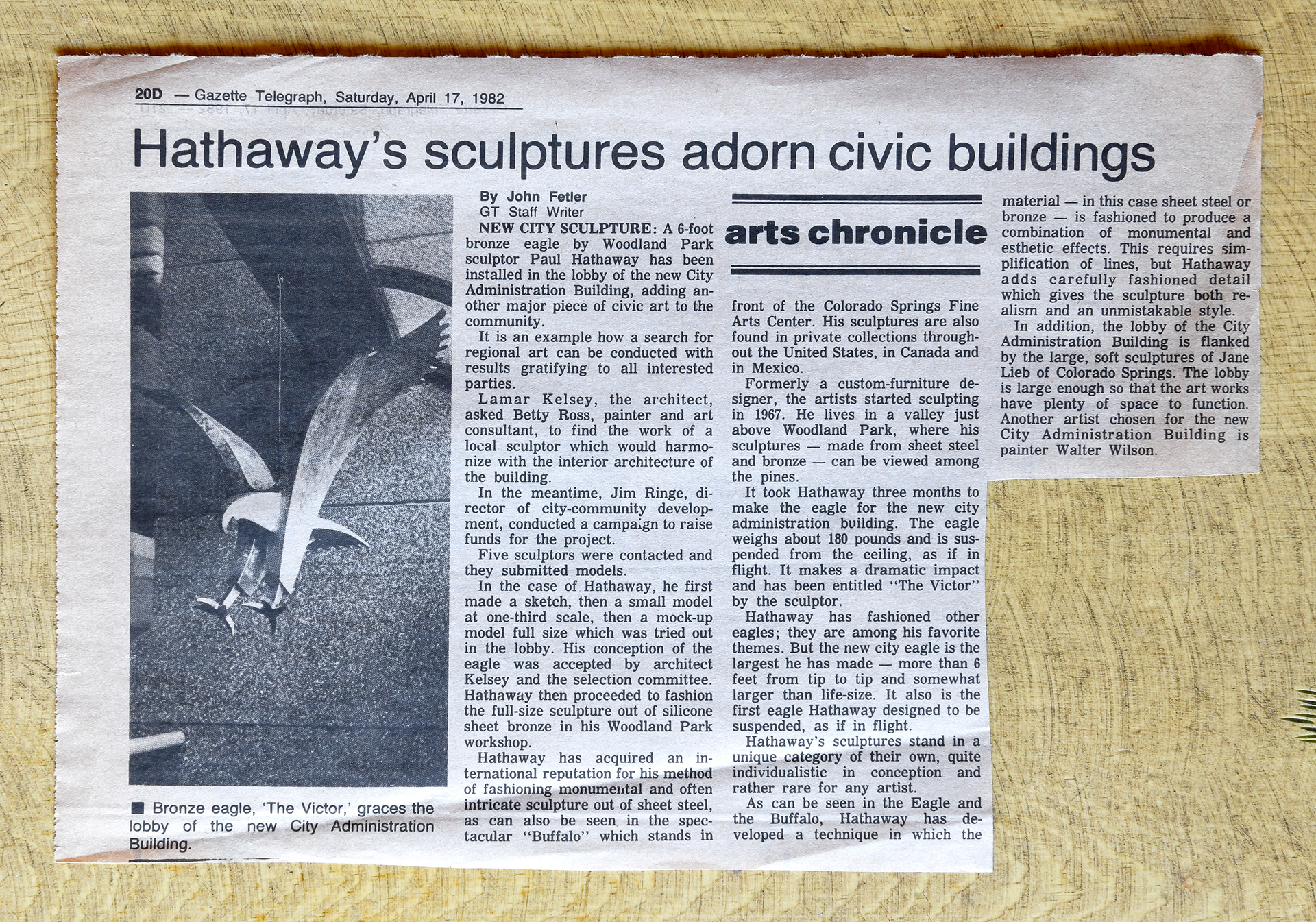 now band-saw this piece to shape. Repeat lay-out and sawing on an adjoining piece. now shape these pieces with hammer and anvil, or vise, or whatever is needed to obtain the required contours and fits. These two pieces might now be tacked together with the torch. The third piece, adjoining, now is cut out, shaped, and tacked in place on the first two pieces. This procedure continues until you have all the pieces in place. one sculpture may have an unlimited number of pieces.