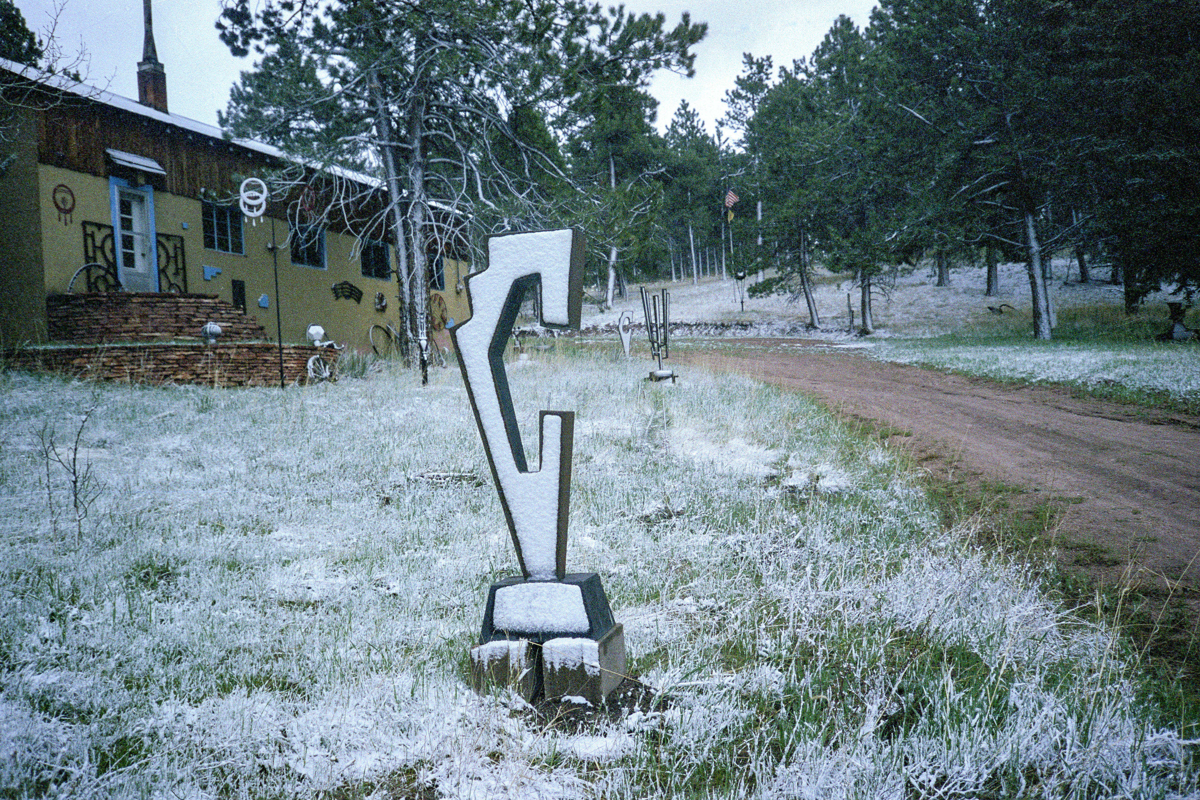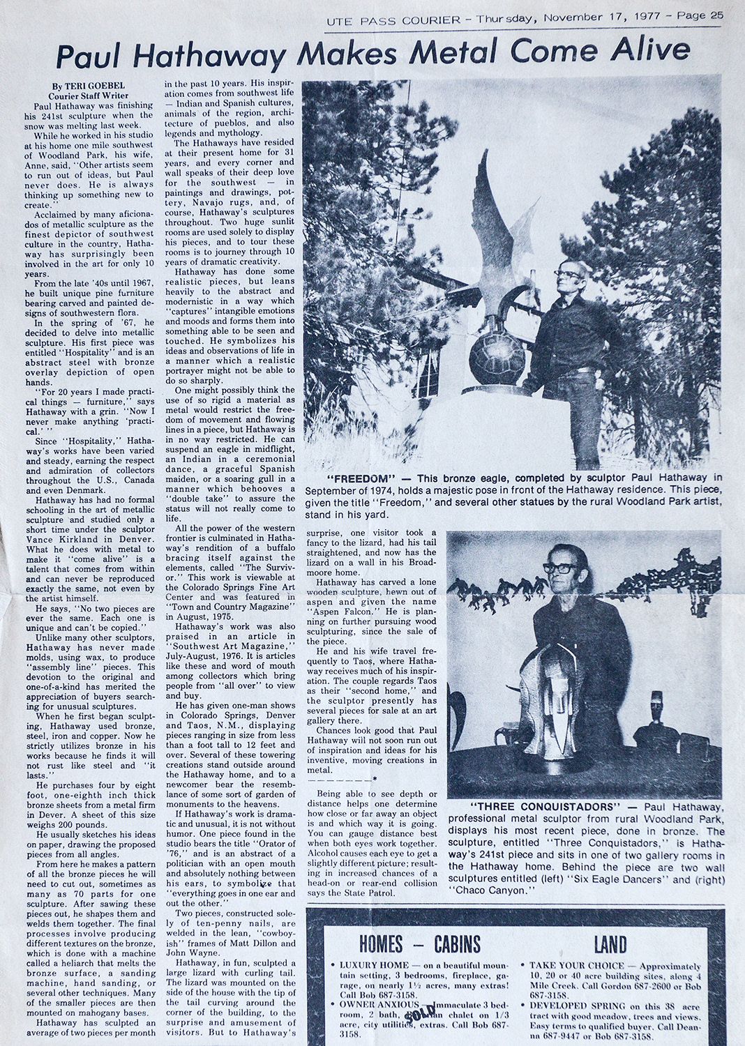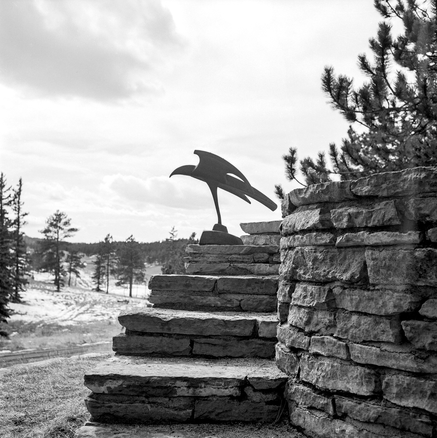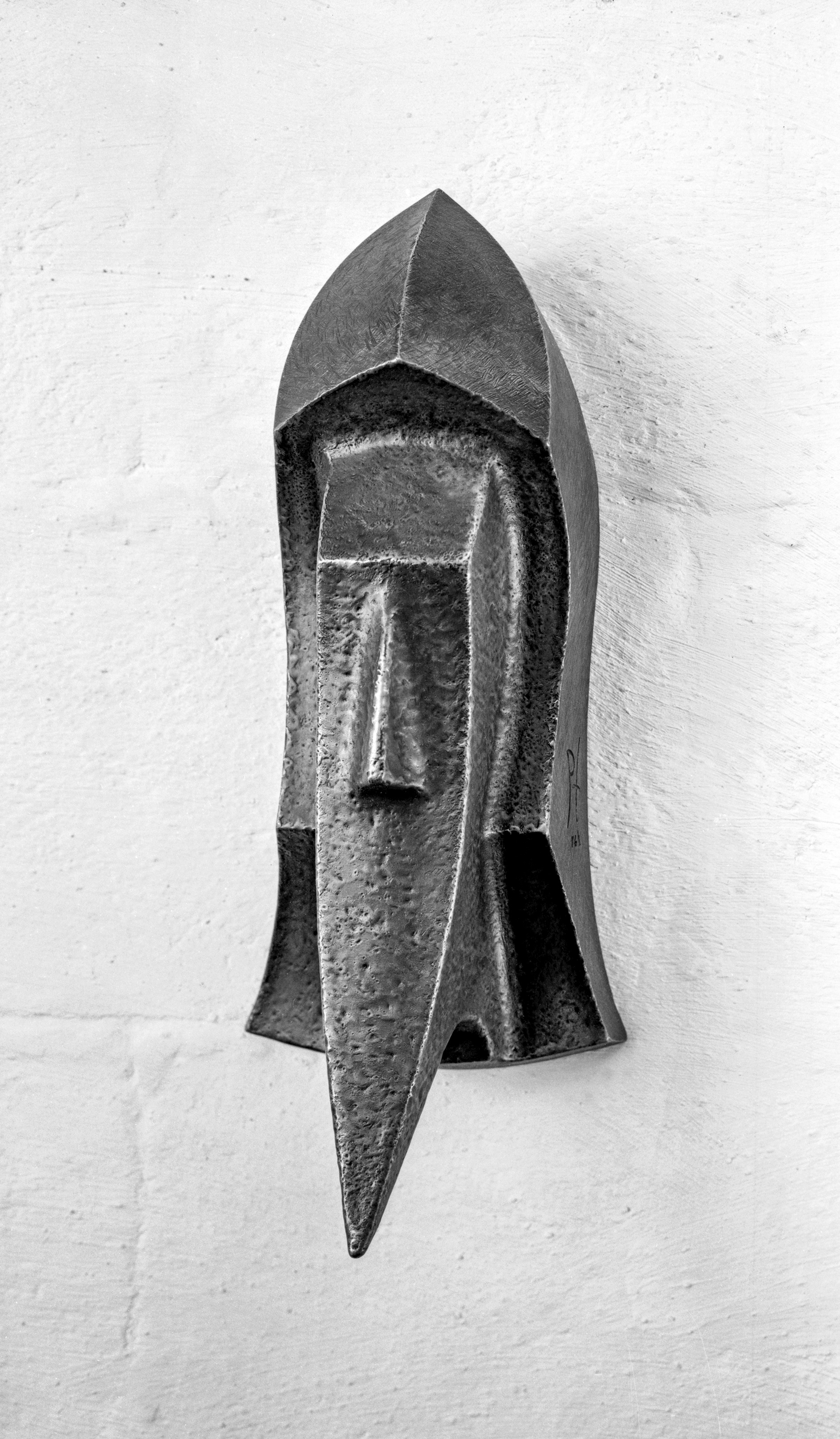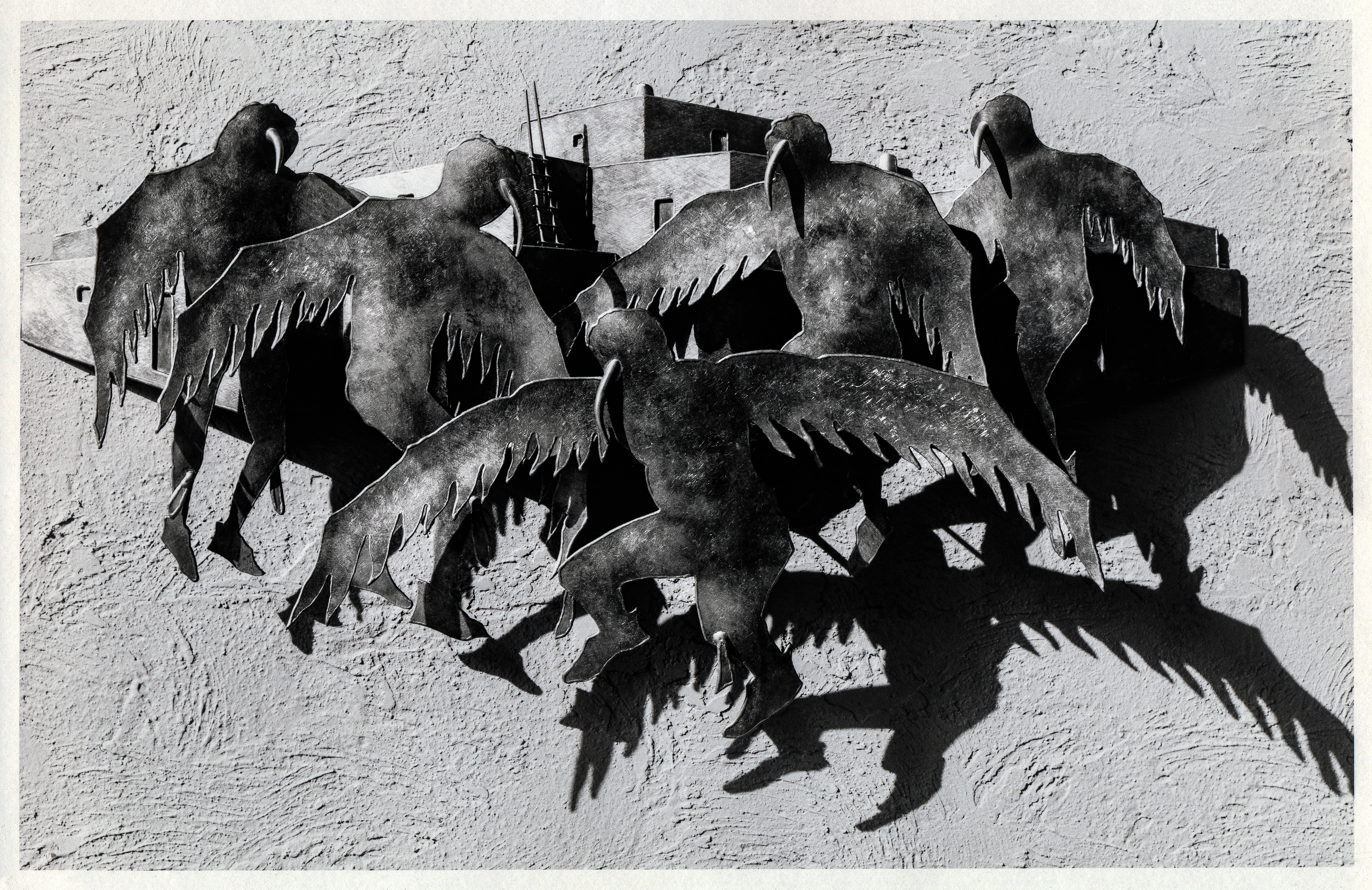 now band-saw this piece to shape. Repeat lay-out and sawing on an adjoining piece. now shape these pieces with hammer and anvil, or vise, or whatever is needed to obtain the required contours and fits. These two pieces might now be tacked together with the torch. The third piece, adjoining, now is cut out, shaped, and tacked in place on the first two pieces. This procedure continues until you have all the pieces in place. one sculpture may have an unlimited number of pieces.
