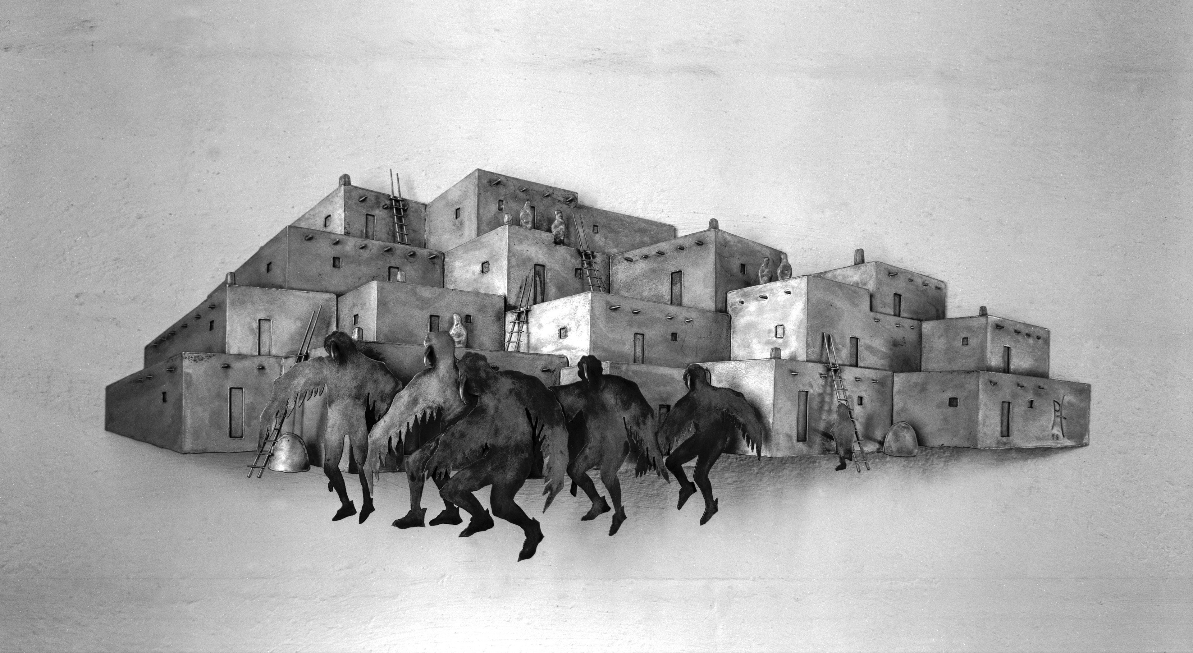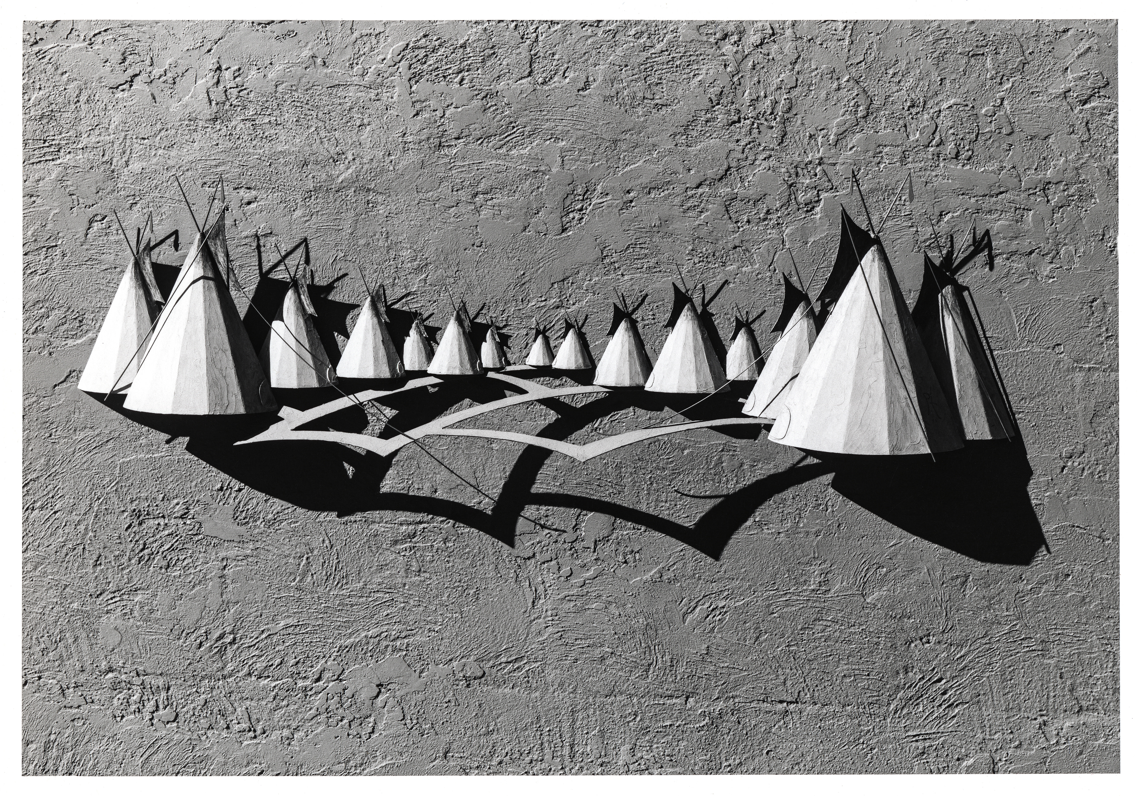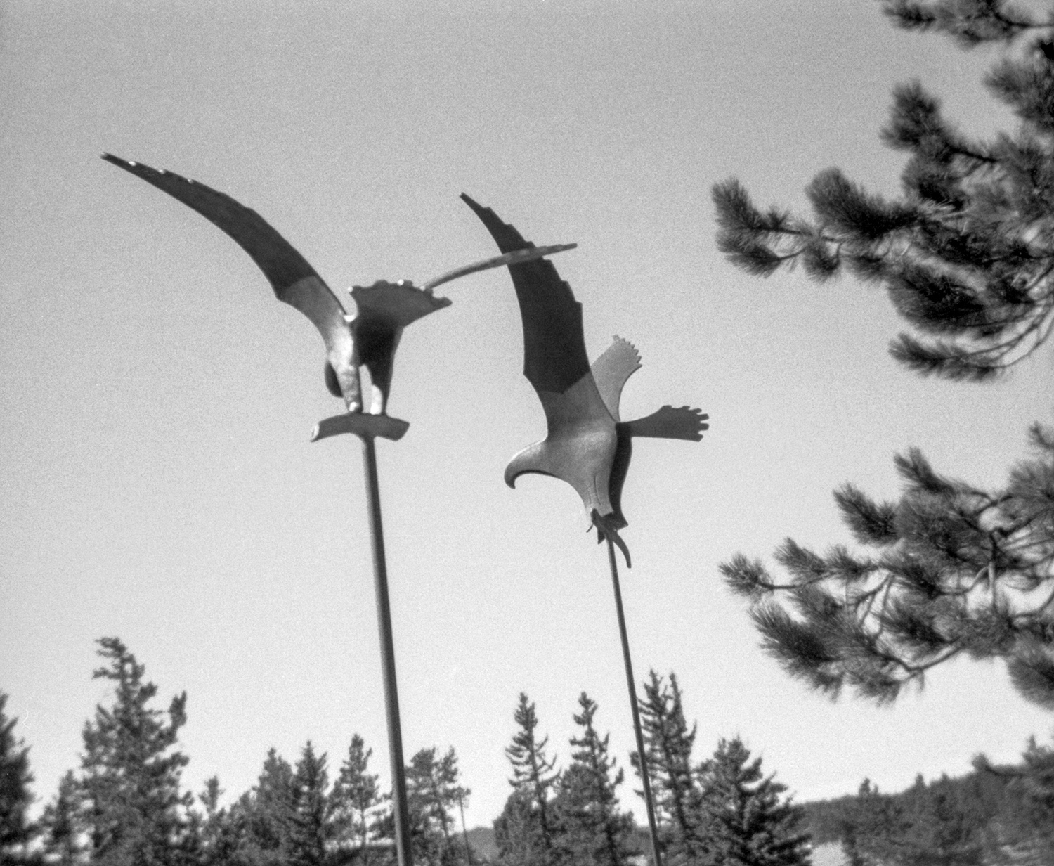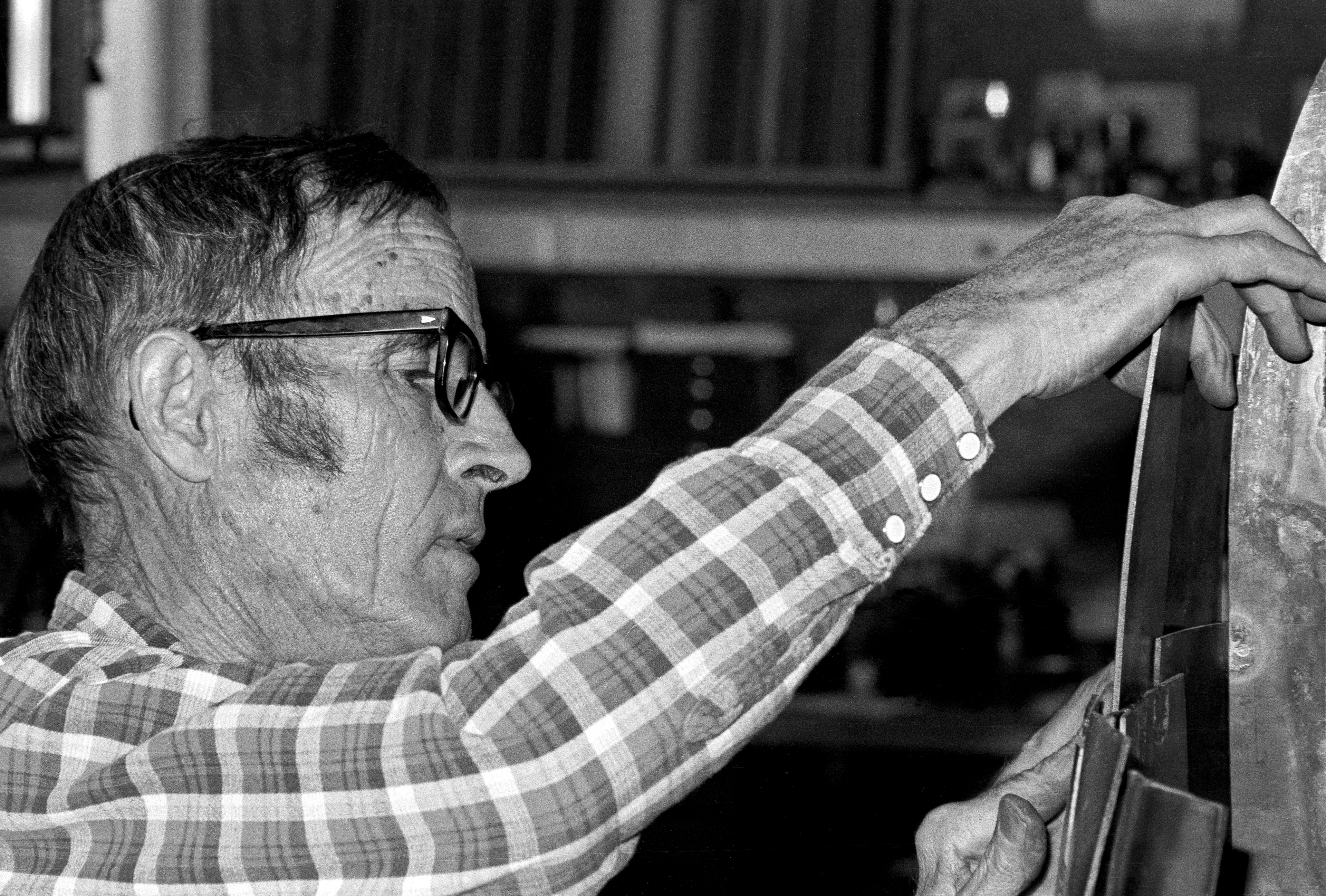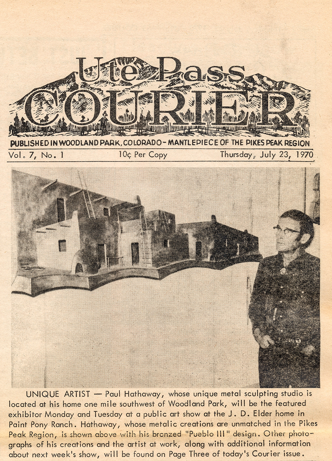 now band-saw this piece to shape. Repeat lay-out and sawing on an adjoining piece. now shape these pieces with hammer and anvil, or vise, or whatever is needed to obtain the required contours and fits. These two pieces might now be tacked together with the torch. The third piece, adjoining, now is cut out, shaped, and tacked in place on the first two pieces. This procedure continues until you have all the pieces in place. one sculpture may have an unlimited number of pieces.